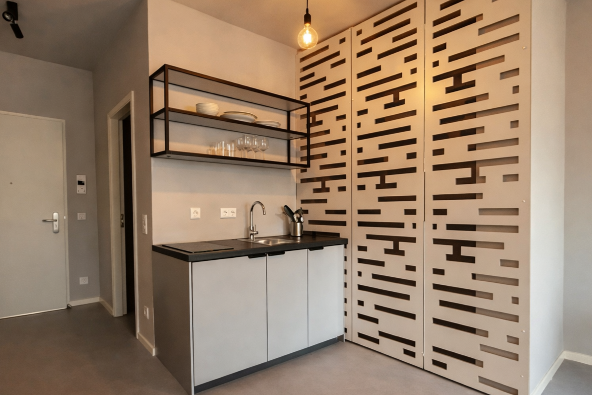 Services: Turn-Key Service inkl. Design, Möblierung und Küchenzeile für 76 Wohnungen Konzept: Urbanes Micro-Living-Konzept mit offener Gestaltung und Loft Charakter